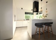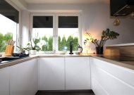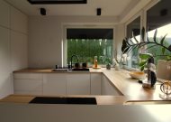 - kuchnia z meblami w zabudowie, z kompletnym sprzętem AGD marki BOSCH i półwyspem,
