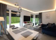 - salon z jadalnią (ok. 21 m2) z wyjściem na taras wykonanego z płyt z kamienia naturalnego i do zadbanego ogrodu,