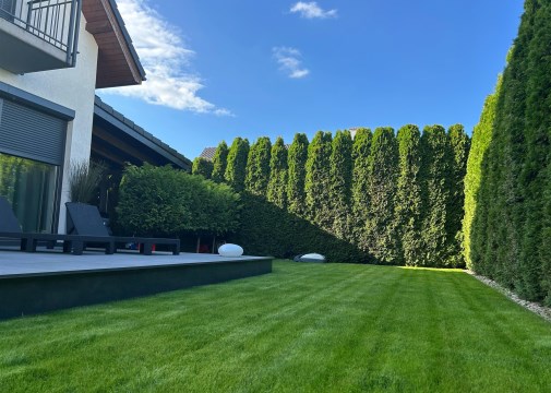 W domu znajduje się wiele komfortowych i praktycznych rozwiązań: system filtrowania i odkamieniania wody, system alarmowy, rolety zewnętrzne sterowane pilotem, system nawadniania ogrodu, robot koszący trawnik, nowy piec dwuobiegowy z zasobnikiem wody i wiele innych.
