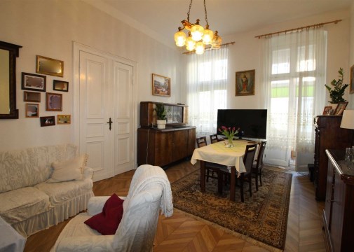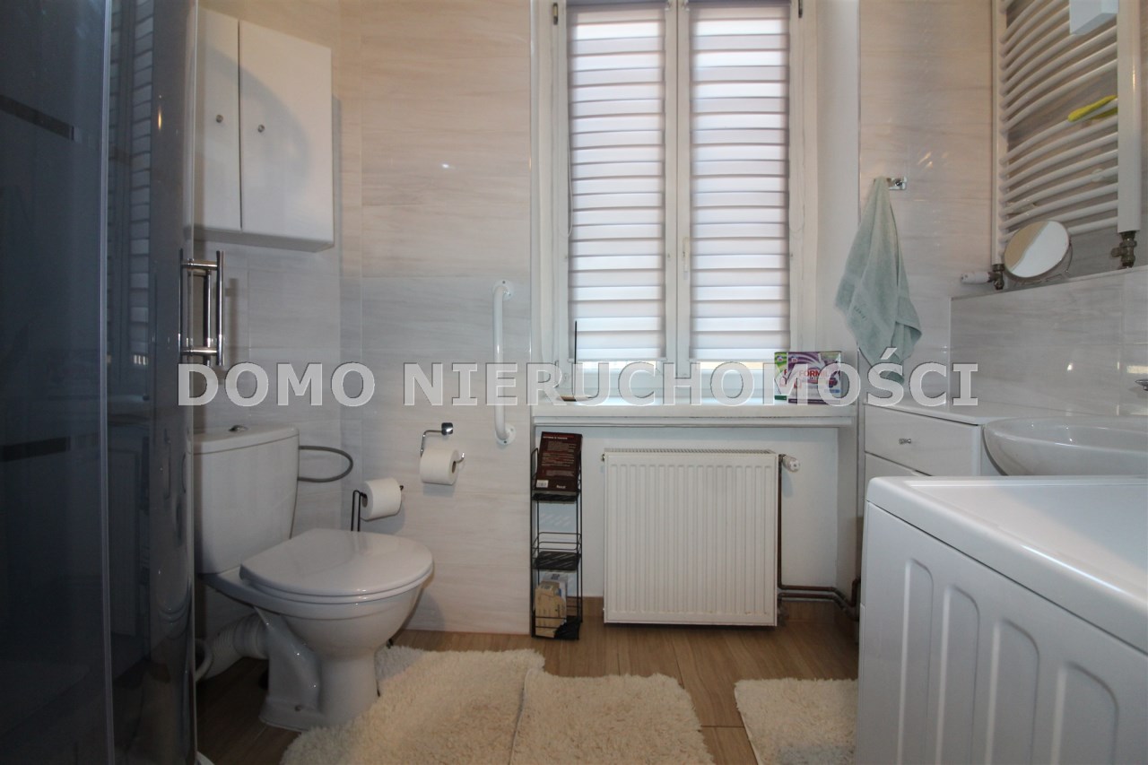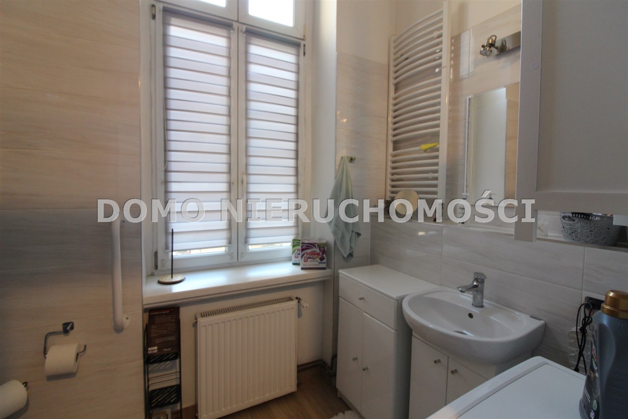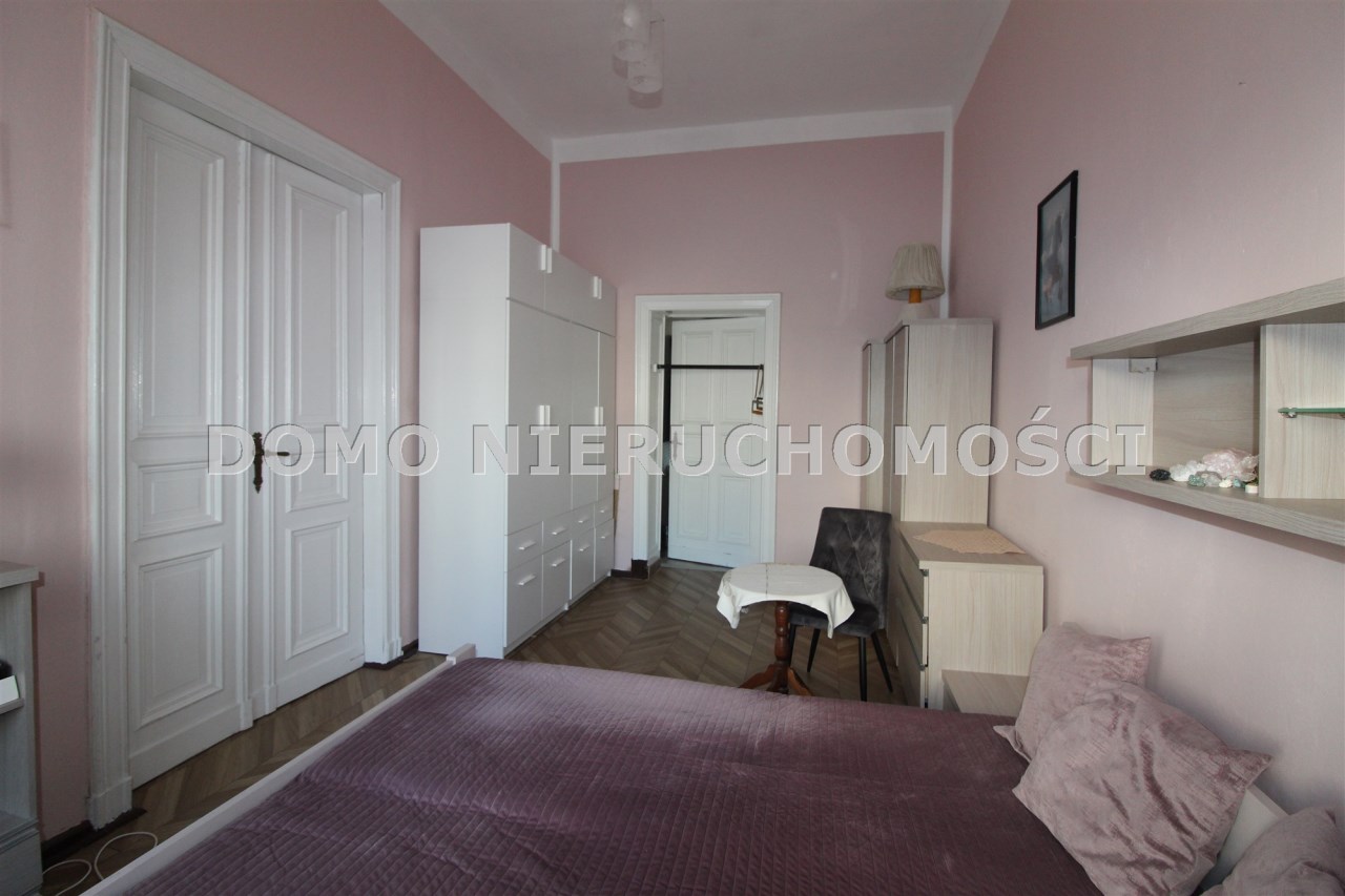 Mieszkanie o powierzchni 81 m2 składa się z trzech dużych pokoi, przedpokoju, kuchni i łazienki. Mieszkanie jest zadbane, słoneczne, z wystawą okien na dwie strony. Z największego pokoju jest wyjście na zabudowany balkon. Do mieszkania przynależy pomieszczenie na półpiętrze. Można korzystać z piwnicy. W podwórzu miejsca parkingowe dla mieszkańców. Ogrzewanie własne gazowe. Okna wymienione. Oryginalna stolarka drzwiowa. Miesięczny czynsz ok. 350 zł, fundusz remontowy 162 zł.