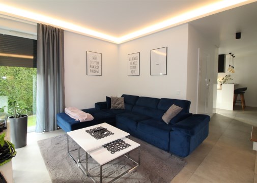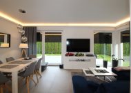 - salon z jadalnią (ok. 21 m2) z wyjściem na taras wykonanego z płyt z kamienia naturalnego i do zadbanego ogrodu,