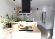 - kuchnia z meblami w zabudowie, z kompletnym sprzętem AGD marki BOSCH i półwyspem,