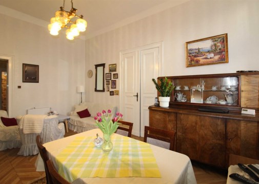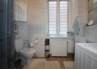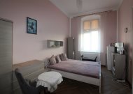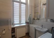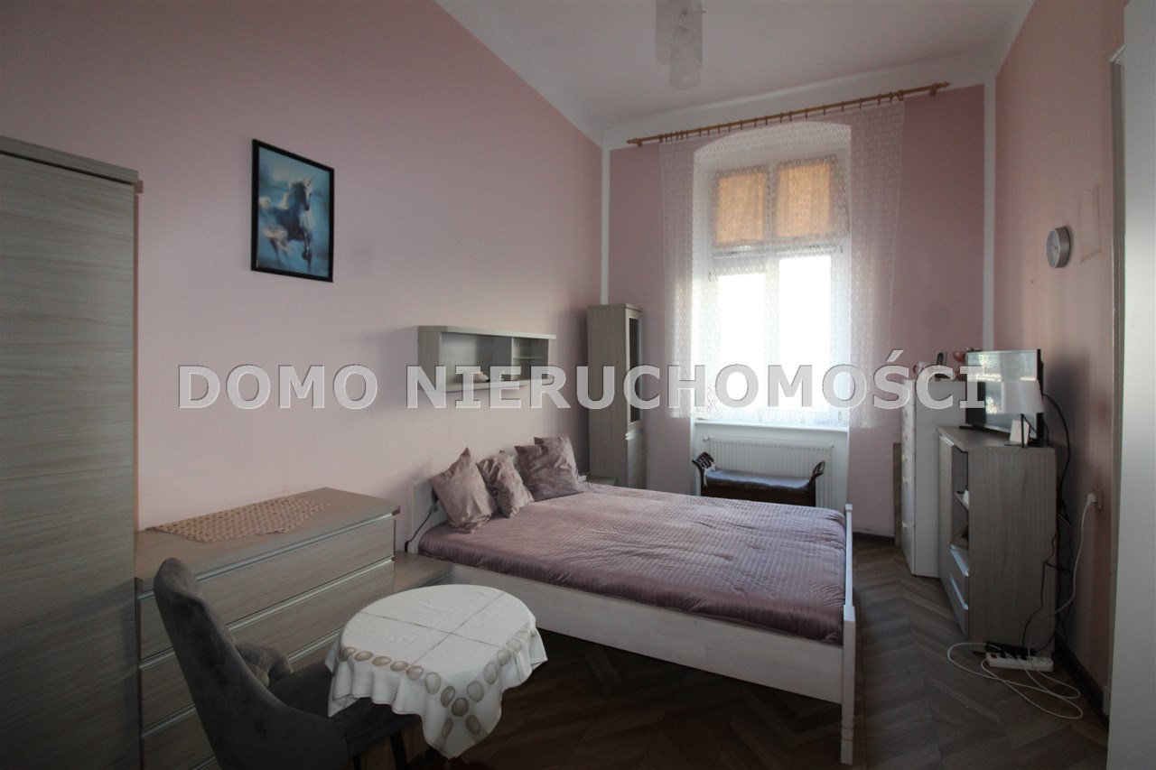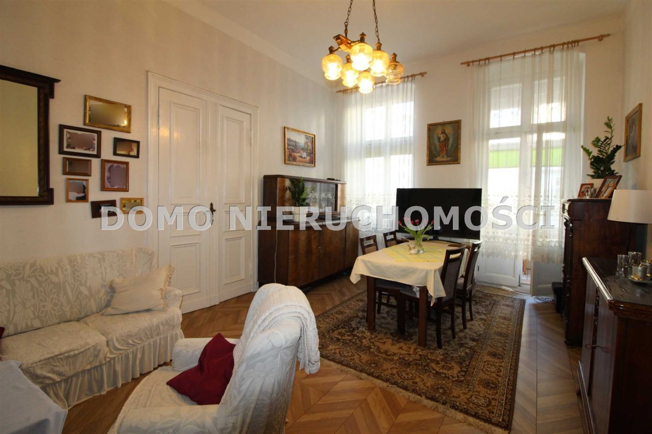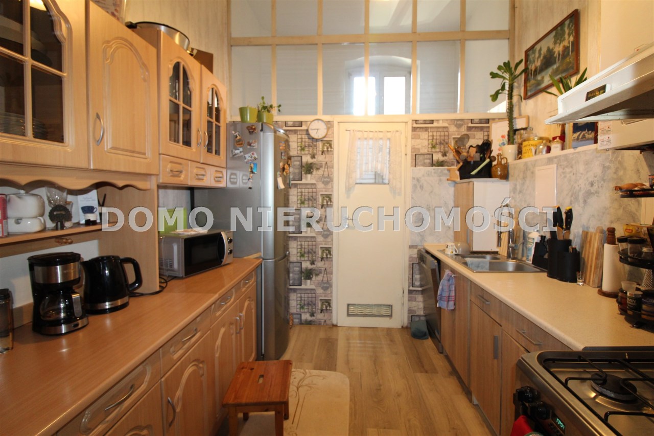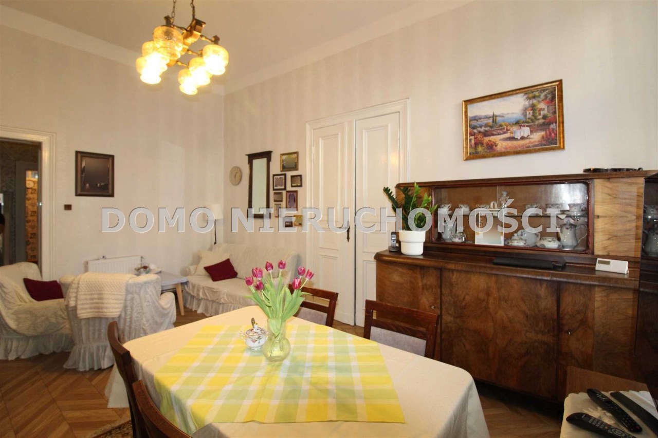 Mieszkanie o powierzchni 81 m2 składa się z trzech dużych pokoi, przedpokoju, kuchni i łazienki. Mieszkanie jest zadbane, słoneczne, z wystawą okien na dwie strony. Z największego pokoju jest wyjście na zabudowany balkon. Do mieszkania przynależy pomieszczenie na półpiętrze. Można korzystać z piwnicy. W podwórzu miejsca parkingowe dla mieszkańców. Ogrzewanie własne gazowe. Okna wymienione. Oryginalna stolarka drzwiowa. Miesięczny czynsz ok. 350 zł, fundusz remontowy 162 zł.